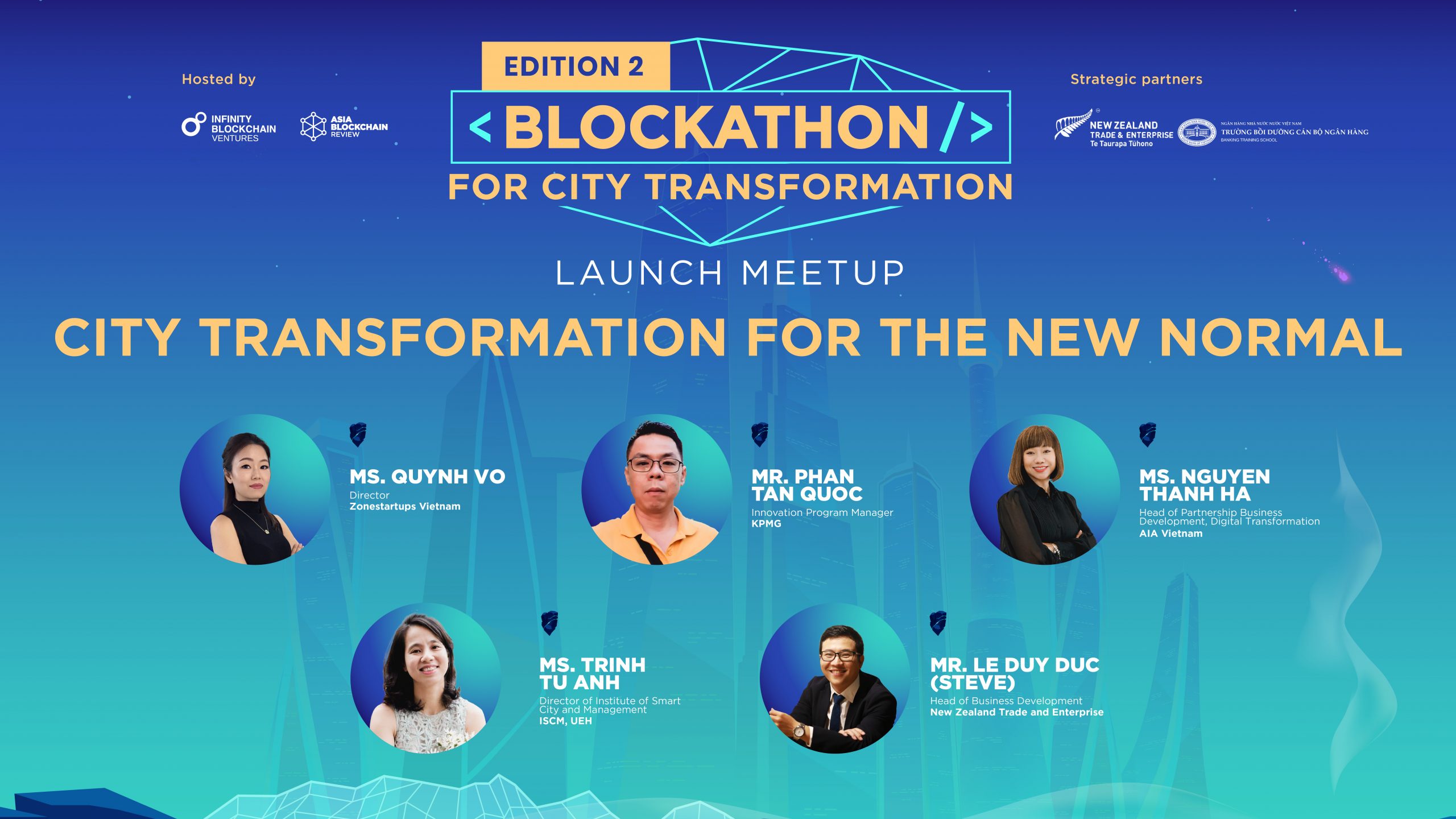 This is a private and cozy meet-up to invite our key partners from the government, the community of technology, innovation, entrepreneur, and big corporates to reunite to together discuss on the topic “City Transformation For The New Normal” with the panel by the Panelists & Moderator from the New Zealand Trade & Enterprise, KPMG & TMA Alliance, AIA Vietnam, Institute of Smart City and Management UEH, Zone Startups.